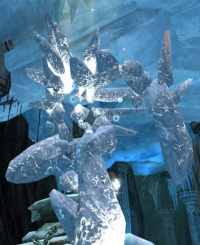 Diamantsplitter-Nebel - Zauber (Eye of the North). Gefrorene Kondensation verbindet sich zu Eisstacheln, welche 140 Punkte Schaden zufügen und zu einer 10 Sekunden langen Blutung führen.Ohne Attribut (Monster)