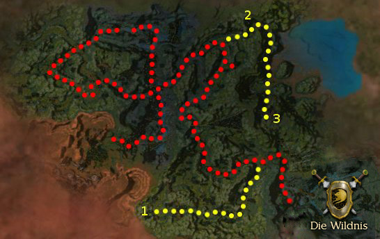 - Sind die beiden Häuptlinge tot, müsst ihr zurück auf den ursprünglichen Pfad (auf der Karte in rot)