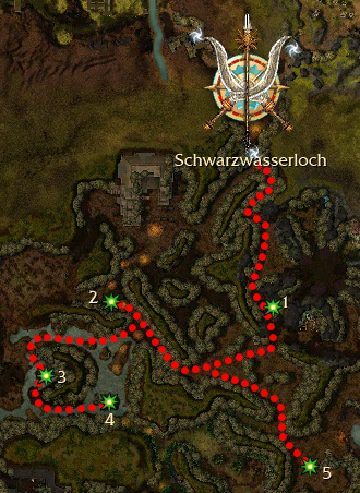 Im Lahtenda-Sumpf befinden sich fünf Gruppen von Korsaren-Seemännern, die getötet werden müssen. Folgt der grünen Markierung. Sind alle fünf Gruppen getötet, kann man sich die Belohnung bei Wächter Kovu abholen.