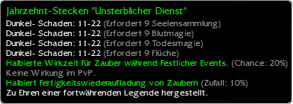 • Halbierte Wirkzeit für Zauber während Festlicher Events. (Chance: 20%) Keine Wirkung im PvP.