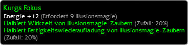 Fokus: Alittas Fokus | Der Geistesstürmer | Droknars Beherrschungsfokus | Droknars Illusionsfokus | Droknars Inspirationsfokus | Droknars Schnellwirkungsfokus | Gwens Flöte | Kurgs Fokus | Rosen-Fokus