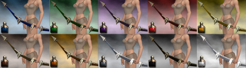Gefärbt werden können die dunkleren Bereiche des Bogens, die dann eine dunkle Variante der gewählten Farbe annehmen. Die ursprünglich goldfarbenen Bereiche erscheinen nach dem Färben mit Weiß oder Silber silberfarben.