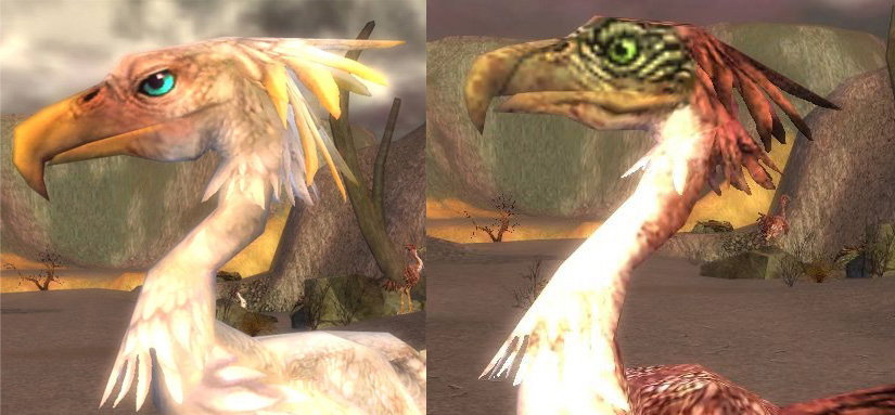 - Der Weiße Moa ist um einiges detailierter gestaltet als der normale Moa. Besonders gut am Kopf zu erkennen.