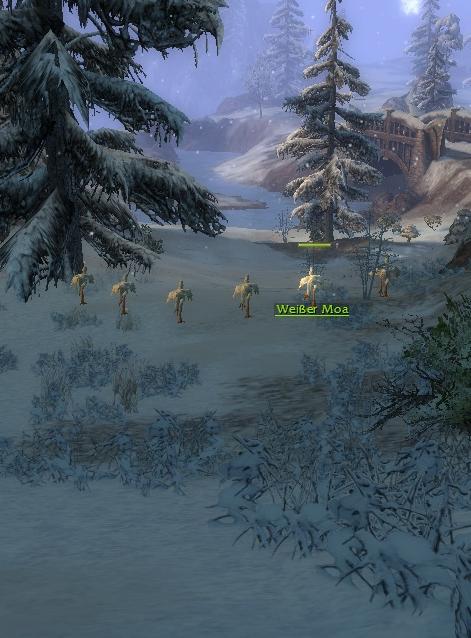 Wenn man die Außenposten Sifhalla und Olafsheim in südliche Richtung verlässt, läuft manchmal eine Herde aus mehreren Tieren nach Norden. Wenn die Herde nicht direkt erscheint, muss man das Gebiet erneut betreten. Die gelegentlich südlich von Sifhalla erscheindende Moagruppe bewegt sich Richtung Süden und verlässt die Instanz im Süd-Osten am Übergang zum Norrhart-Gebiet. Es gibt Berichte, dass weiße Moas im Süd-Westen von Olafsheim erscheinen, wenn man das Gebiet vom Drakkar-See aus betritt. Sie erscheinen auch, wenn man das Varajar-Moor von den Schlachttiefen aus betritt.