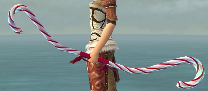 Der Zuckerstangen-Bogen ist ein Langbogen den es ausschließlich an Wintertagen gab. Man konnte ihn bei Zuckerschmieden (siehe Sammler-Liste) für 9 Zuckerstangenscherben herstellen lassen. Er war bisher zu allen Wintertagen erhältlich und ist deshalb nicht so wertvoll wie der Wintergrün-Bogen. Im Gegensatz zu letzterem hat der Zuckerstangen-Bogen keinen Inschriften-Slot und kann auch weder mit einer Bogensehne noch mit einem Bogengriff aufgewertet werden. Er sieht aus wie eine Pfefferminz-Zuckerstange.
